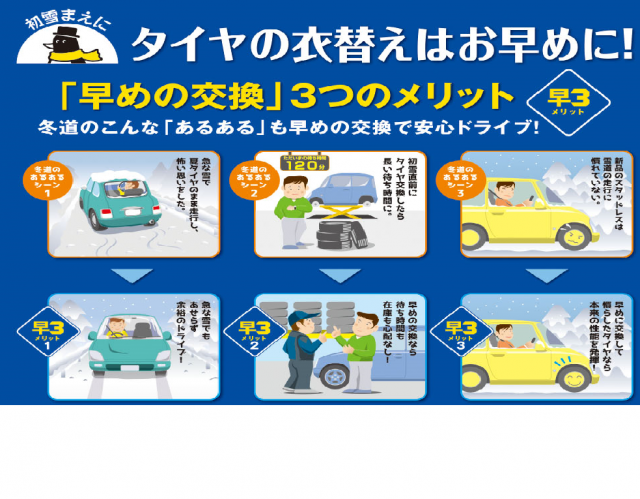 早めに冬タイヤに交換して、安心の冬を迎えましょう! 打倒ラニーニャ!