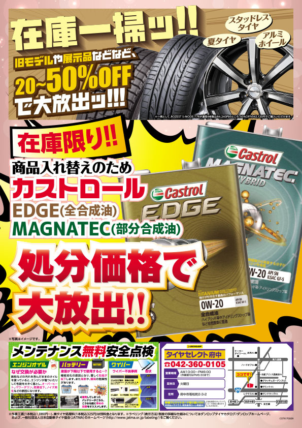 タイヤセレクト府中では、2月大好評だった「カストロールオイル」クリアランスセール