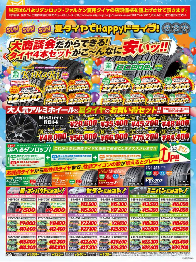 ご存知の方もいらっしゃるかと思いますが、6月からタイヤの本体価格が値上がりします(>_<)