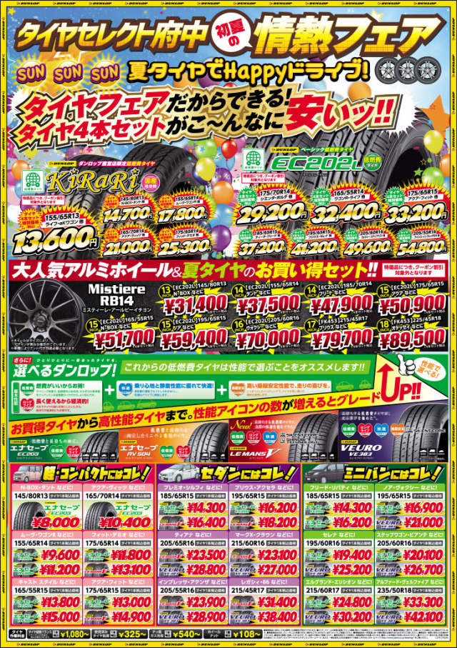 こんにちは!いつも当HPをご覧いただきましてありがとうございます。 6月に入り、いよいよ待望の夏がやってきますね(^0^) タイヤセレクト府中ではとってもステキなキャンペーン