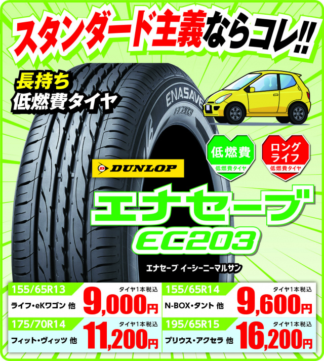 お買い得のダンロップ低燃費タイヤEC202LTDを筆頭に