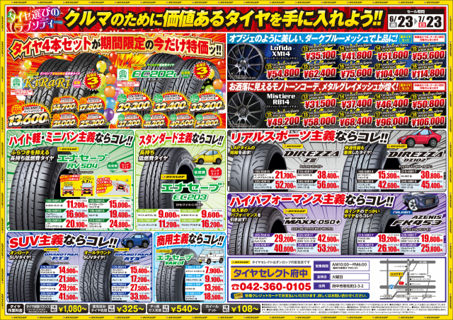 何かと車も重宝される夏に合わせて!タイヤセレクトではとってもお得なセール