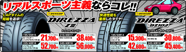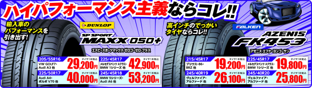 スポーツタイヤもダンロップ! コスパに優れたファルケンもあります