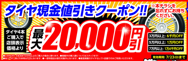 「タイヤ現金値引きクーポン!! 」 タイヤ4本ご購入で、店頭表示価格より