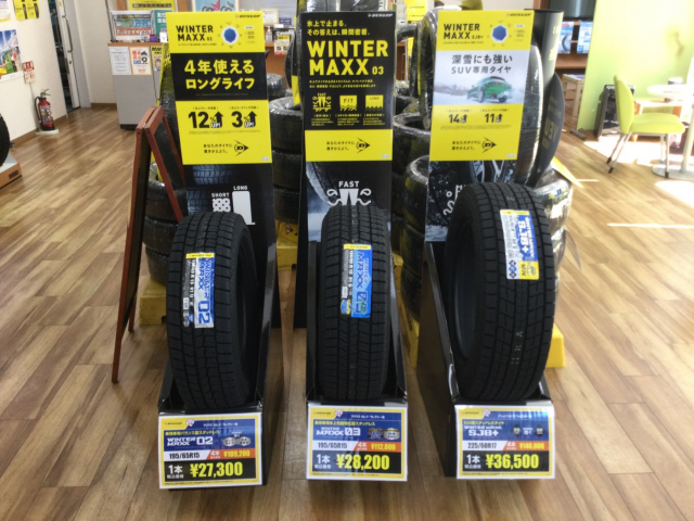 さていよいよタイヤセレクト府中店でもスタッドレスタイヤの展示が始まりました。