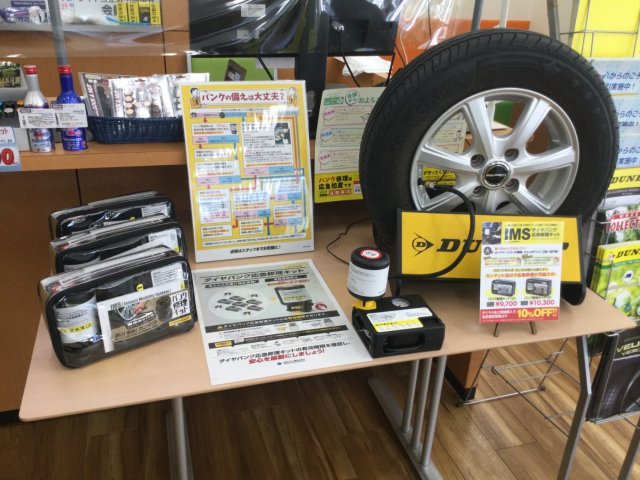 急なパンクも安心 DUNLOPパンク応急キット 皆様こんにちは♪ 本日はタイヤセレクトおすすめ もしもの時の強い味方! ご自身で簡単に出来るパンク応急処置 パンク応急キット IMSのご案内で~す♪ DUNLOPサイレントコアタイヤ対応 パンク応急キット IMS 店内に特設コーナーを設置♪ 商品説明&現物展示してま~す。 ぜひ!ご覧ください♪ 只今、タイヤとセットでご購入いただくと 割引中! 2023.05.24
