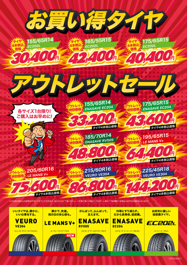 さて、今月はDUNLOPタイヤ4本ご購入で店頭表示価格り15%OFF!!