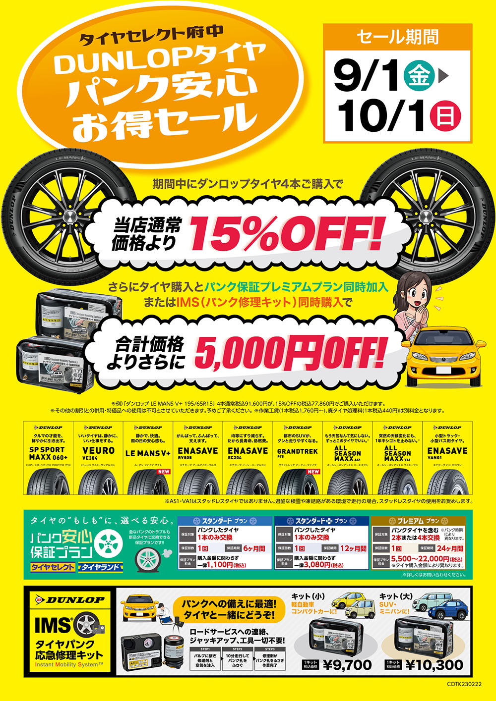 さらにパンク保証プレミアムプラン同時加入又はIMS(パンク修理キット)同時購入で、合計金額よりさらに5000円引き♪