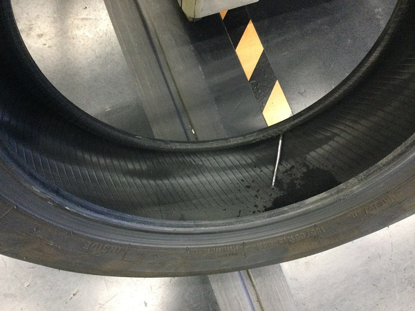 パンクしたタイヤの中はびっくりするほど長いネジが、、
