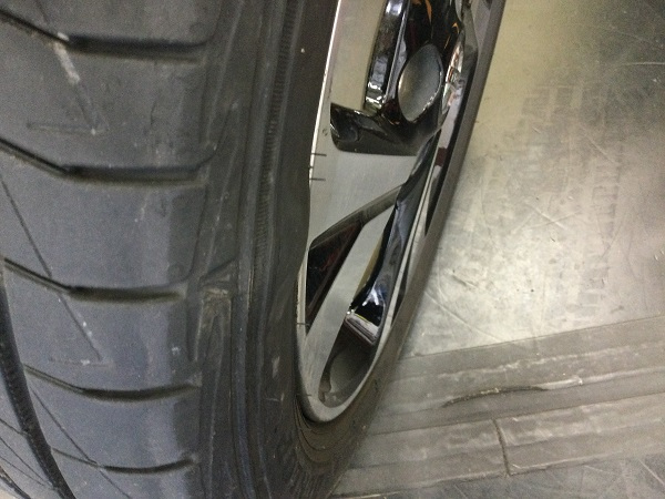 もう一つは勢いよく段差を越えてタイヤが損傷して横が