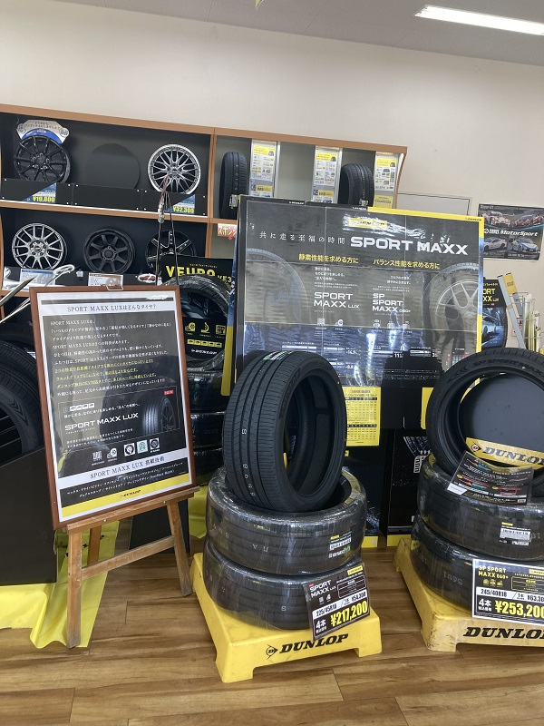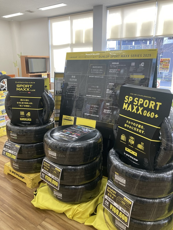 SPORT MAXXシリーズ! みなさま、こんにちは! いつも当店のホームページをご覧いただきありがとうございます。 ★SPORT MAXXシリーズ★ 店内に展示中です。 ぜひ、実物をご覧頂きタイヤ選びを! ※次世代オールシーズンタイヤSYNCHRO WEATHERも展示中! 2025.03.28