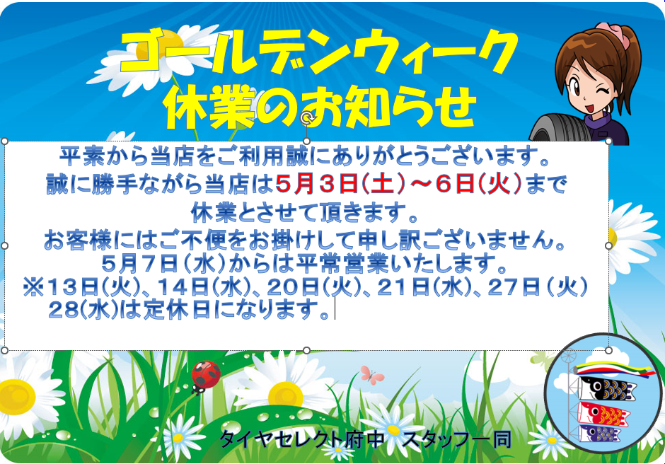 4月30日(水)、5月1日(木)、2日(金) 営業