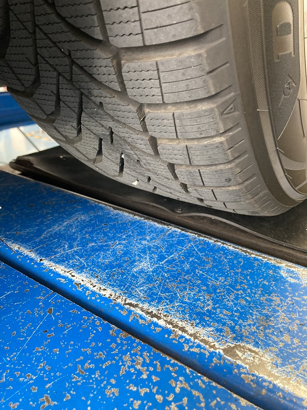 炎天下を走行後のタイヤの画像です。