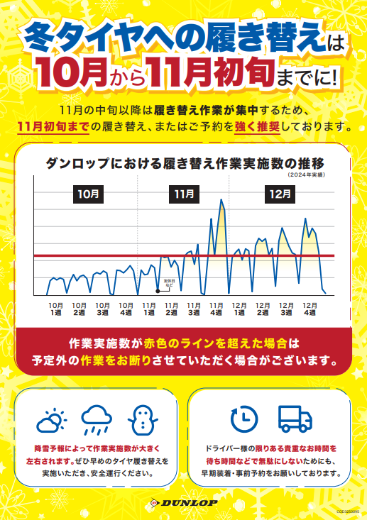 寒くなると急にタイヤ交換の予約が入り始めます。