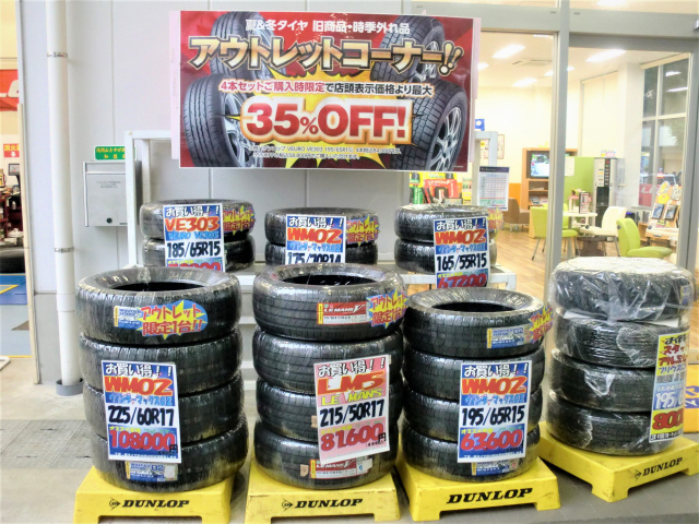 ただいま、タイヤセレクト府中では、アウトレットセ-ルを開催中♪ サイズが合えばラッキ-♪ 訳あり商品の夏タイヤ&スタッドレスタイヤを特別価格で展示中(^^)/ 展示品以外にも在庫多数有り(´▽`) タイヤ交換をお考え...
