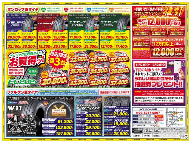 只今、タイヤセレクト久が原店では、セールを開催中!