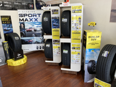 店内だけでなく、お店の外にもおすすめのタイヤを展示しています!