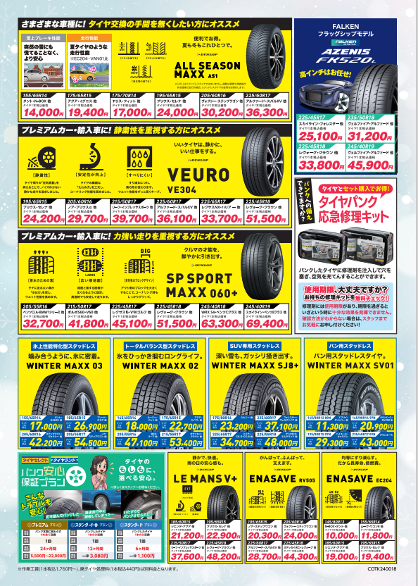 夏タイヤ4本ご購入で15%オフ(店頭価格から)