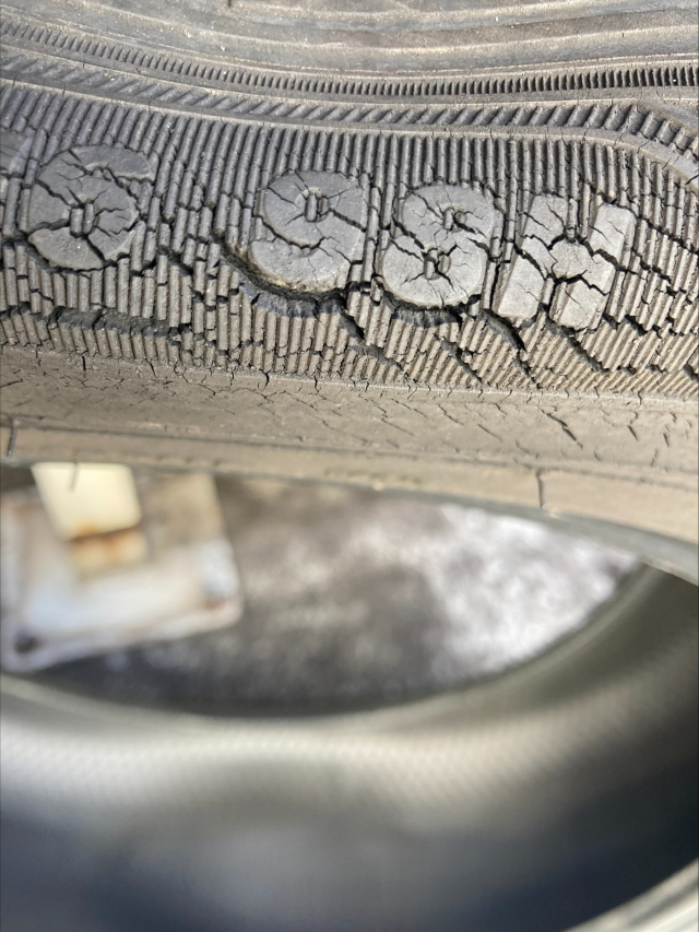 ですが、今回のタイヤはタイヤ1周分ひびが入っていたので交換作業を行いました。できればひび割れの初期段階もしくはひび割れ前に交換を推奨しています。