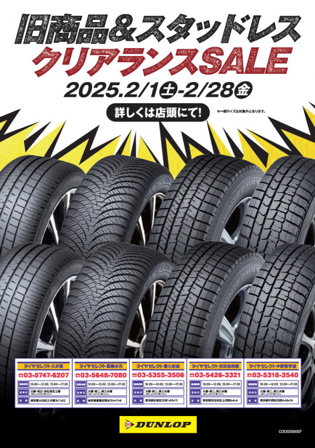 こんにちはタイヤセレクト世田谷用賀です。 クリアランスセールも残りあと本日と明日の2日間になりました。 タイヤをお安く購入出来るチャンスなので是非ご利用下さい。