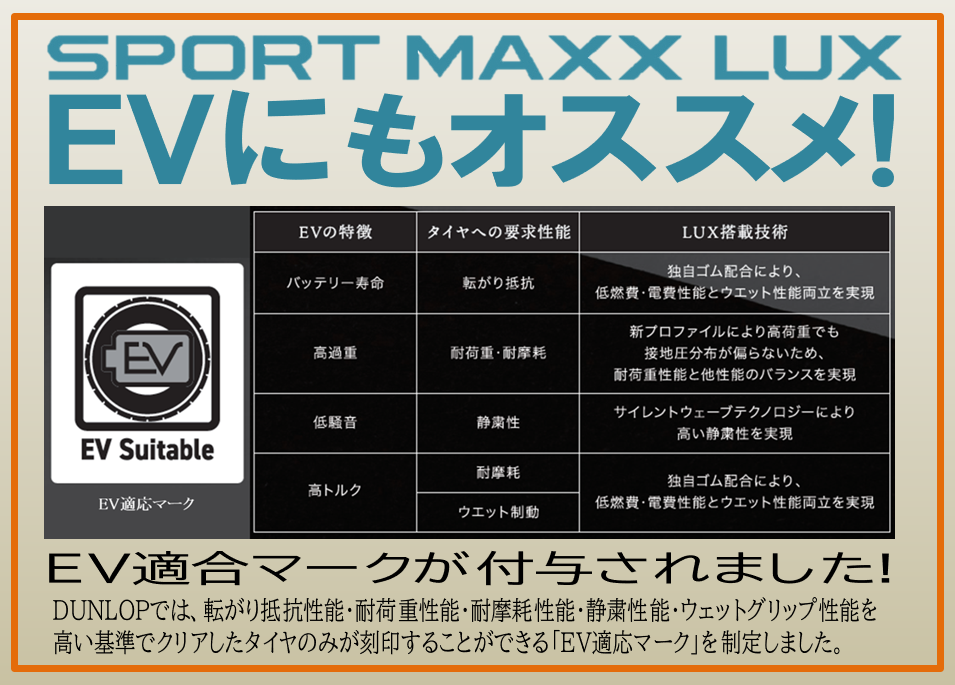 SPORT MAXX LUX はEV用タイヤに求められる性能を