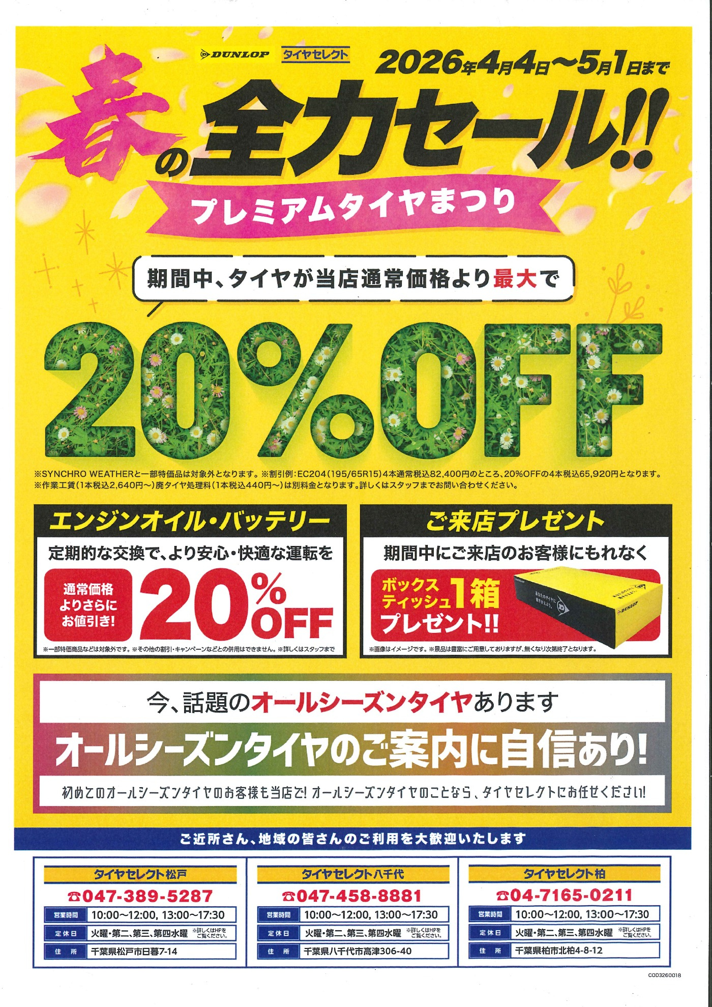 (土)より春の全力セールを開催します。タイヤのほか、