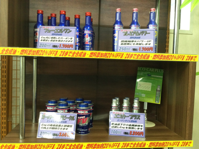当店では4種類の燃料およびオイル添加剤を在庫しております。