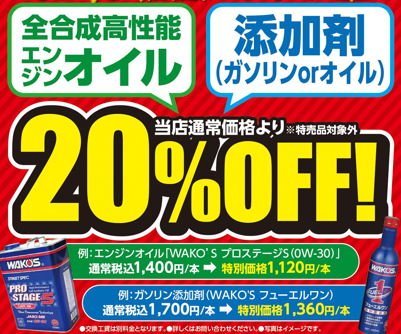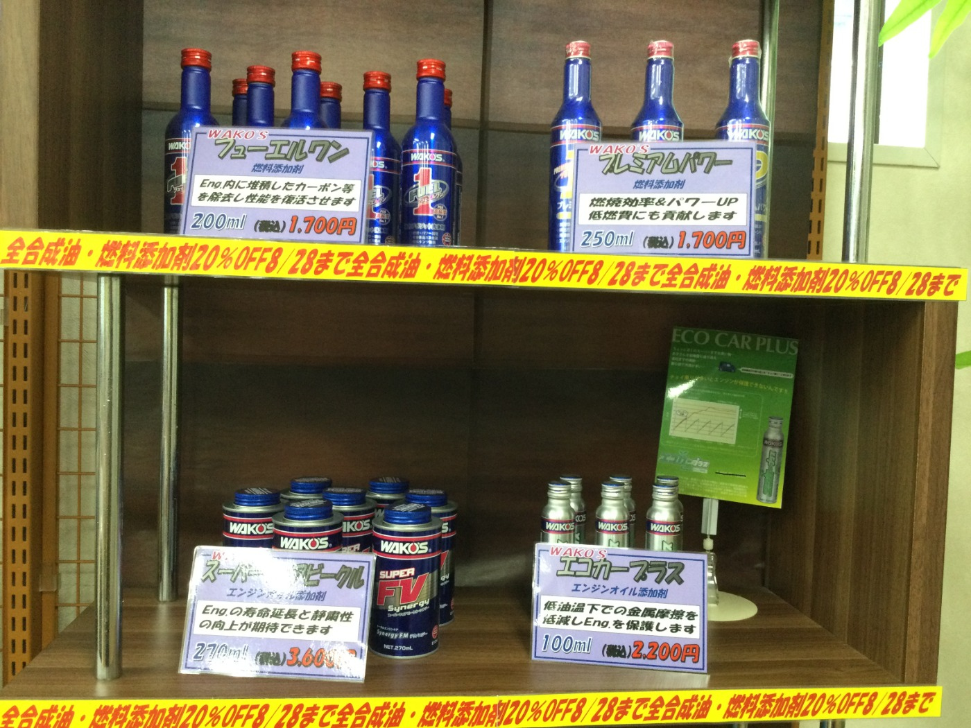 全合成エンジンオイルと燃料・オイル添加剤を20%OFFで販売しております。