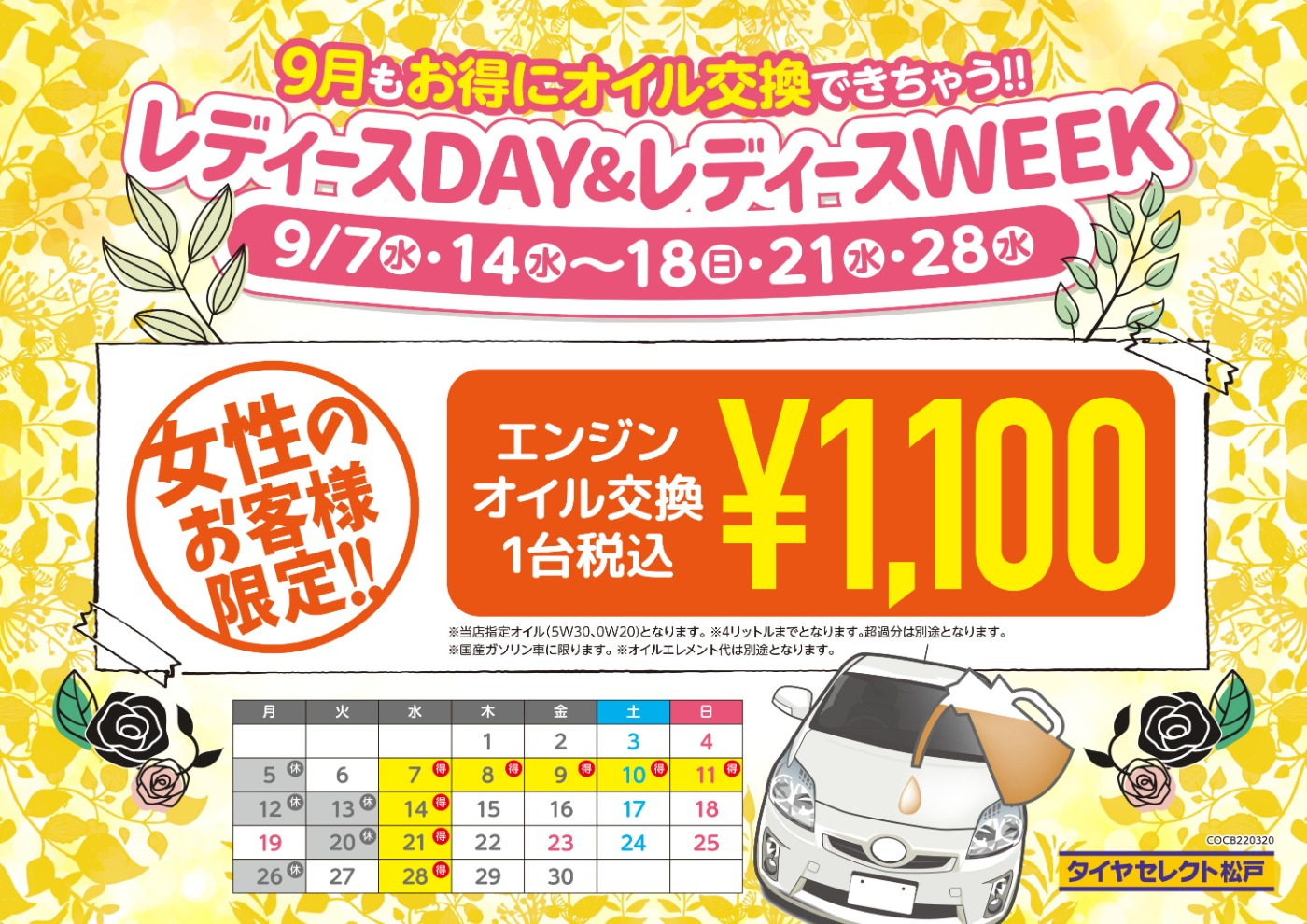 女性のお客様、通常1台分(4ℓまで)税込¥2,200または¥2,500のオイルが