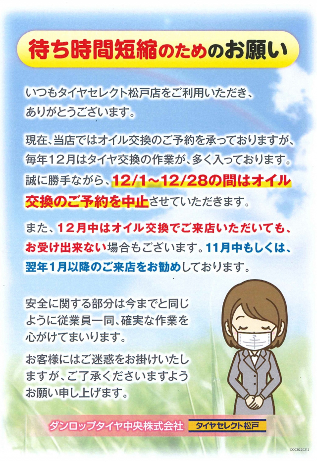 皆様にはご不便をおかけしますが、何卒宜しくお願い致します。