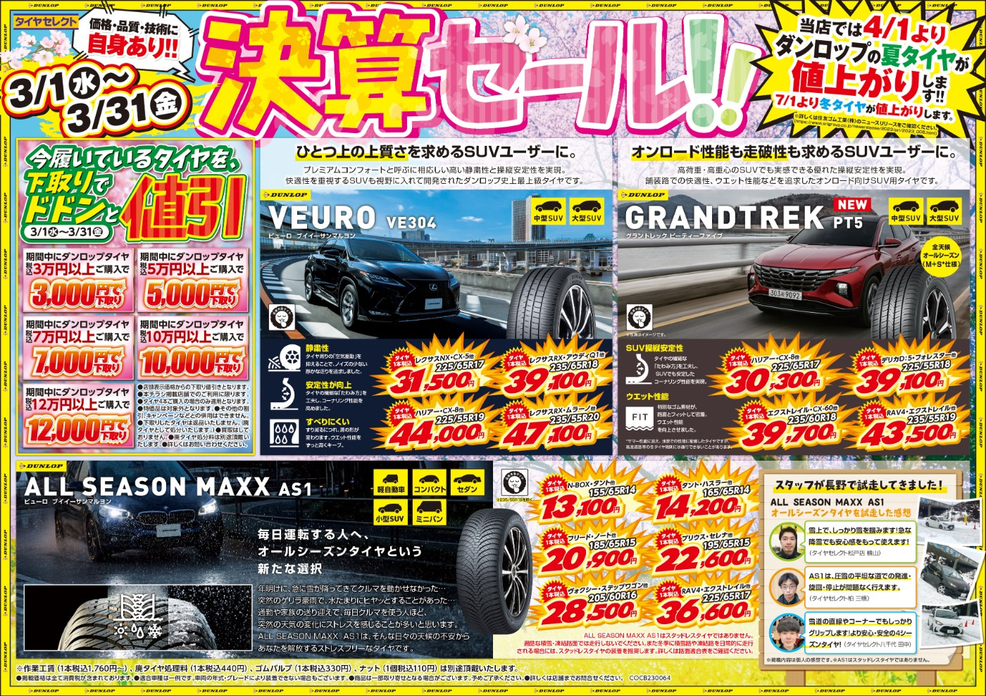 タイヤセレクト松戸では3月1日(水)~31日(金)の一ヵ月間
