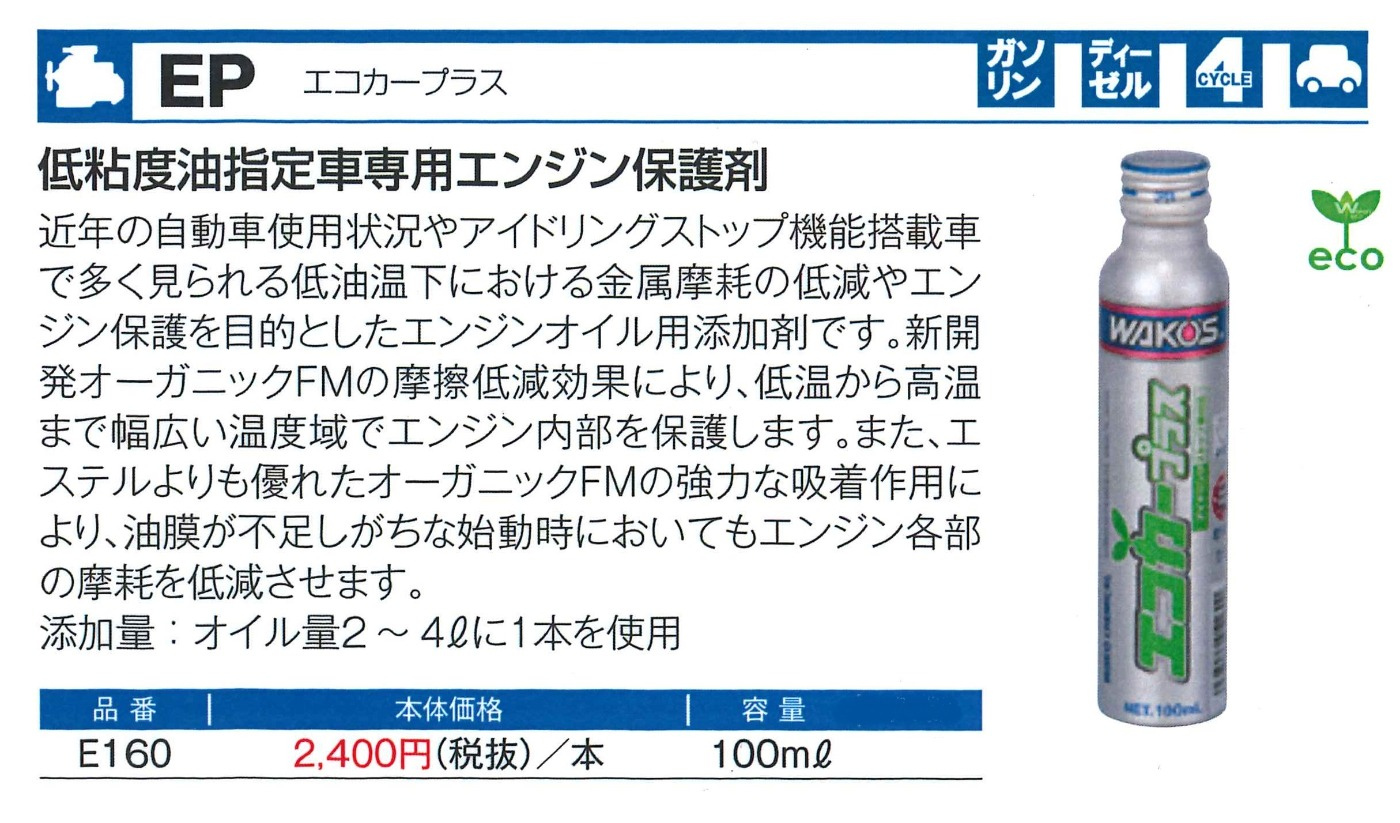皆様こんにちは。今回はオイル添加剤、エコカープラスのご紹介です。