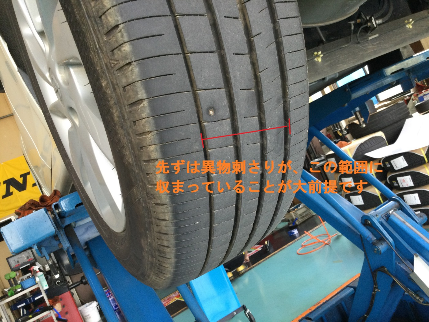 例えばパンクの中で最も多い、クギなどの異物刺さりで来店があった場合、