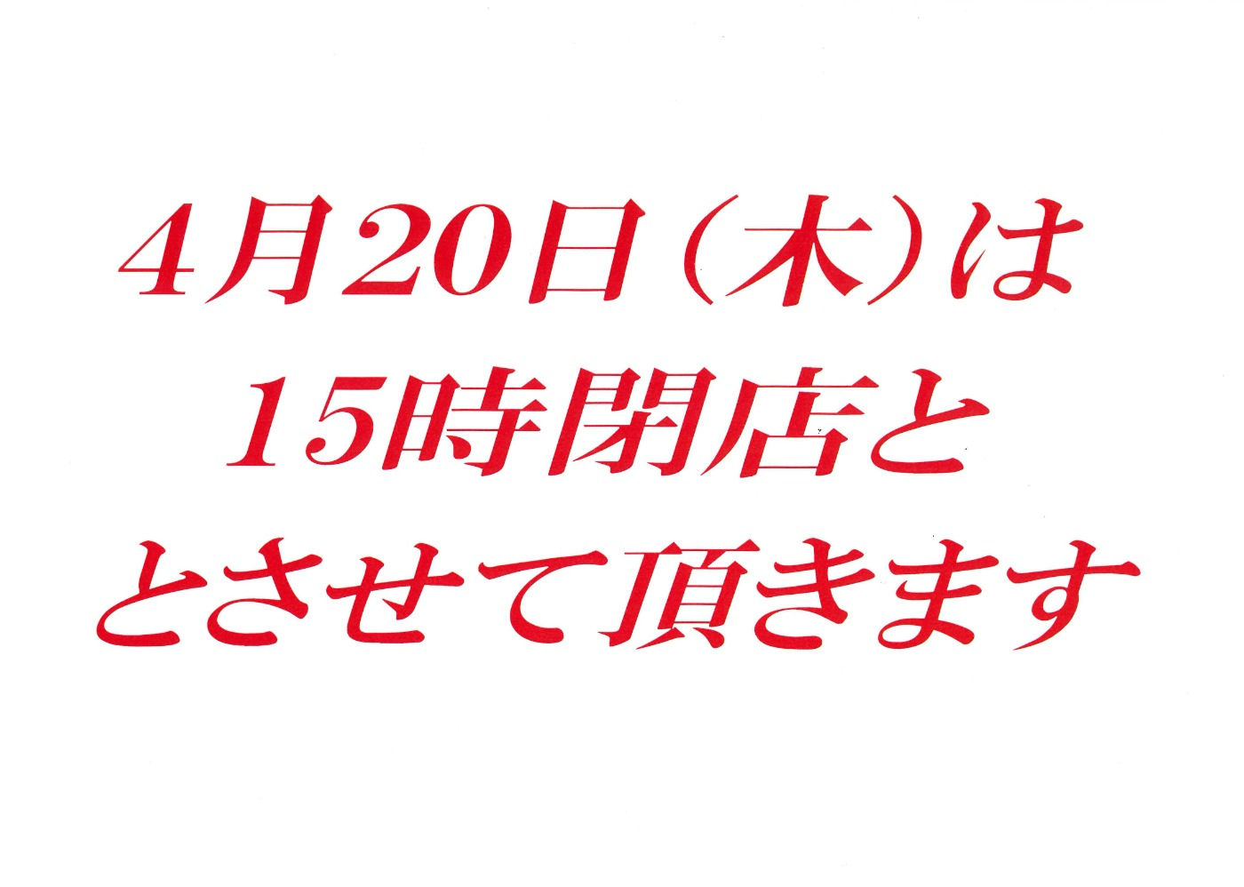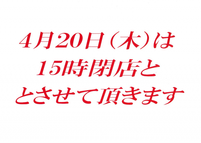 さて、来る4月20日(木)ですが、社内行事開催の為、誠に勝手