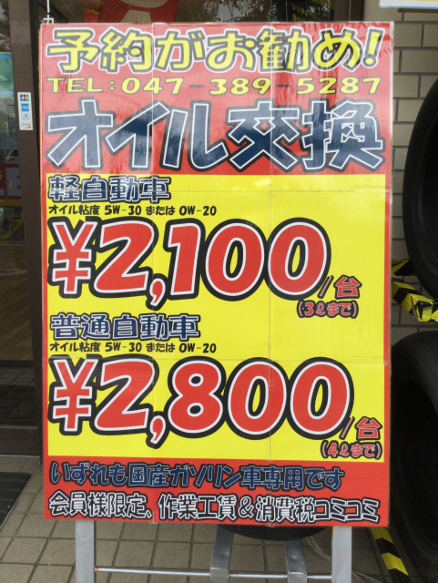 お知らせです。当店は一昨年までオイル交換作業の予約を
