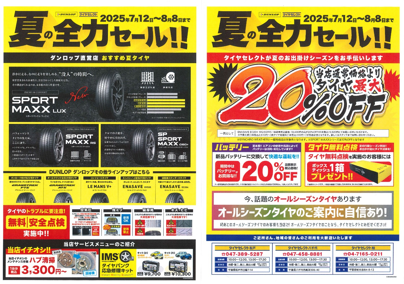 皆様こんにちは。タイヤセレクト松戸では本日7月12日(土)