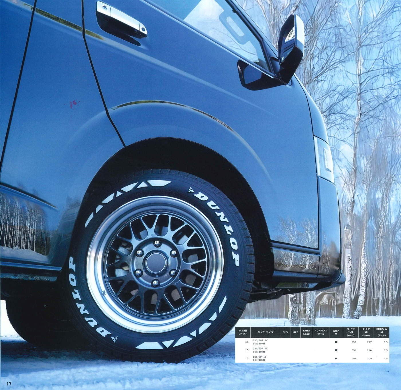 サイズ設定は基本的にハイエース/キャラバン向け純正サイズと、