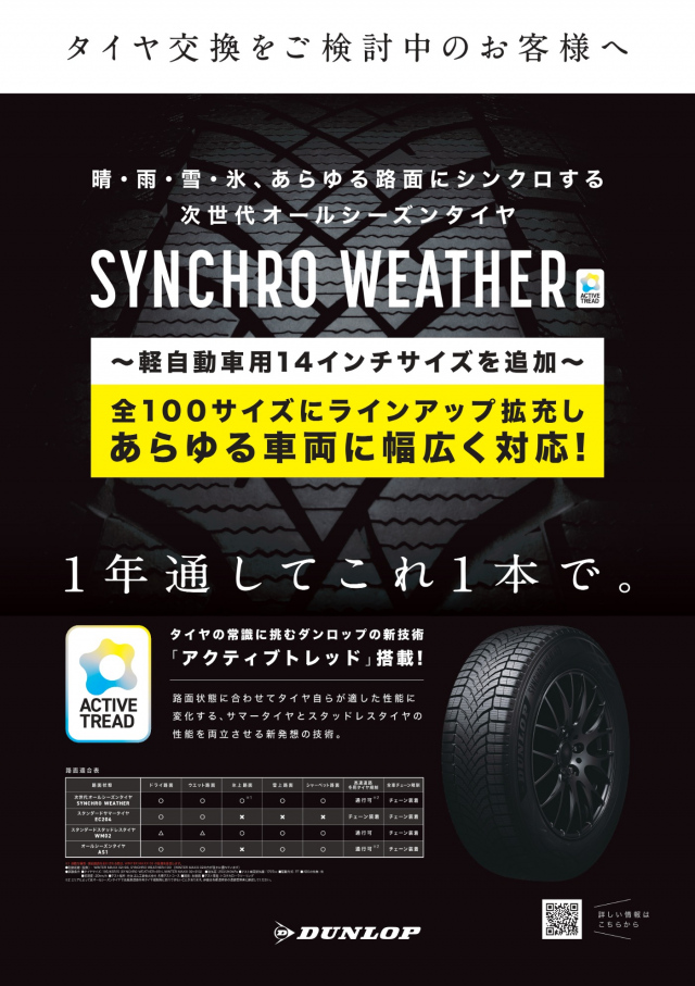 皆様こんにちは。いつも当店ホームページをご覧いただき、 誠にありがとうございます。次世代オールシーズンタイヤ 「シンクロウェザー」の発売開始から丸1年が経ちました。 評判が評判を呼び、今なお沢山のお客様か...
