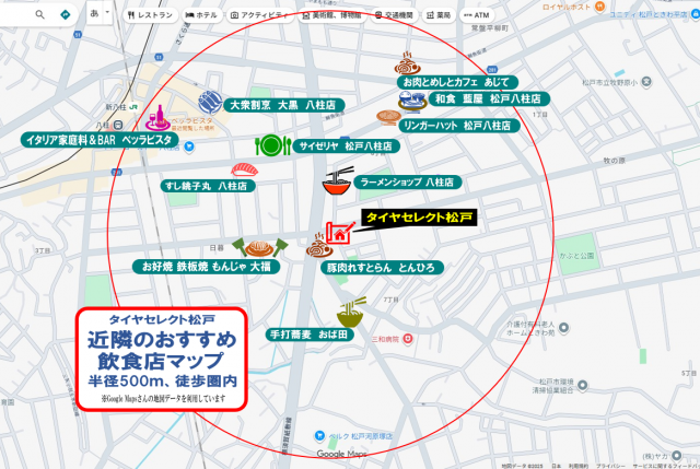 皆様こんにちは。今回はタイヤセレクト松戸から徒歩圏内の、 ランチも楽しめる飲食店をご紹介します。作業の待ち時間中、 お出かけになってみては?近い順にご案内しますと: ①豚肉れすとらん「とんひろ」さん お隣さ...