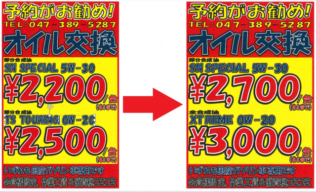 皆様こんにちは。 お求めやすい価格で当店でも多くのお客様にご愛用頂いているエンジン オイルSNスペシャル 5W-30とXtreme 0W-20を値上げします。仕入れ 価格の引き上げによるもので、お客様にはご迷惑をおかけします...