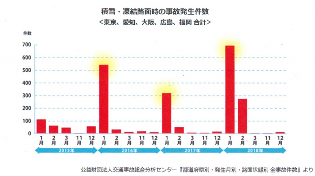 突然ですが、皆様は冬になる前に雪用タイヤに履き替えていますか? 雪用タイヤは雪が降ったら履くのでなく、冬になる前に履き替えるのが 正解です。突然の降雪に備えましょう。 添えた棒グラフは日本自動車タイヤ協会...