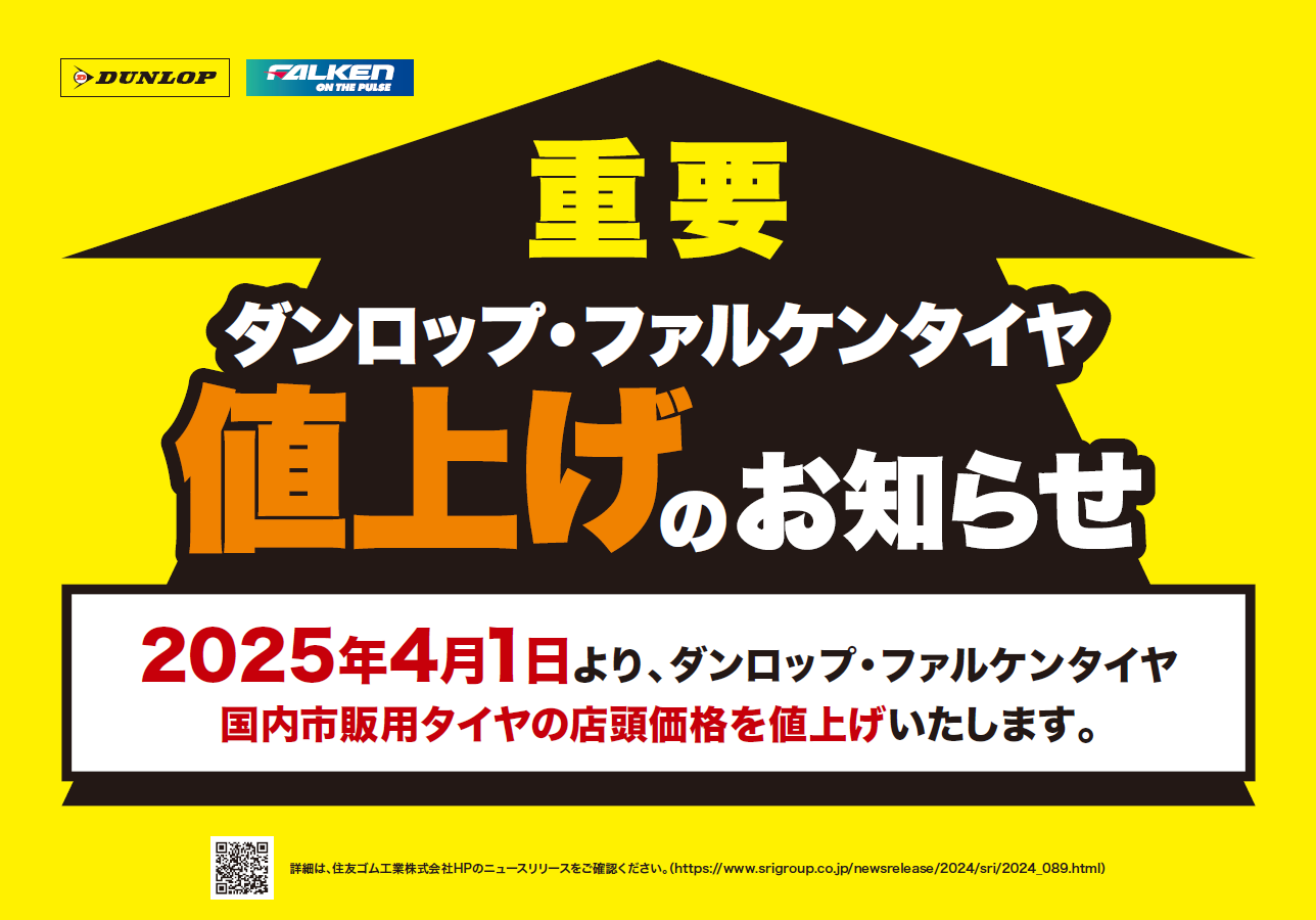 4月1日より値上げとなりますので、今年タイヤ購入をお考えでしたら、値上げ前にご検討ください。