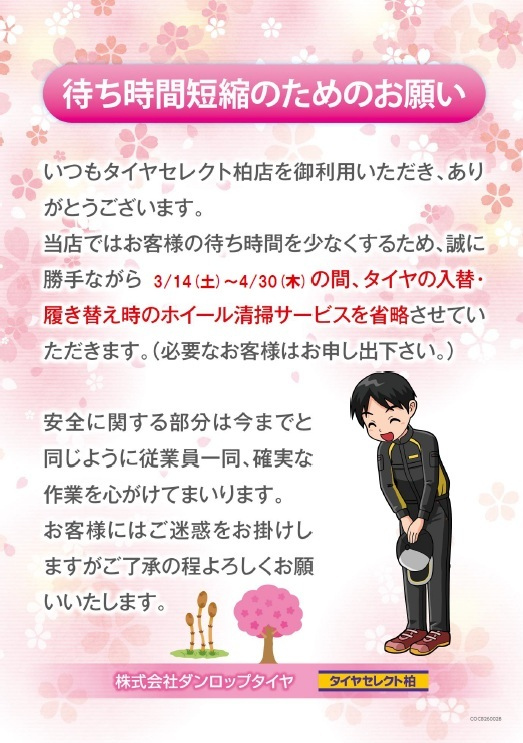 安全の為に1台でも多くのお客様の履き替え作業をお受けする為の対応となります。