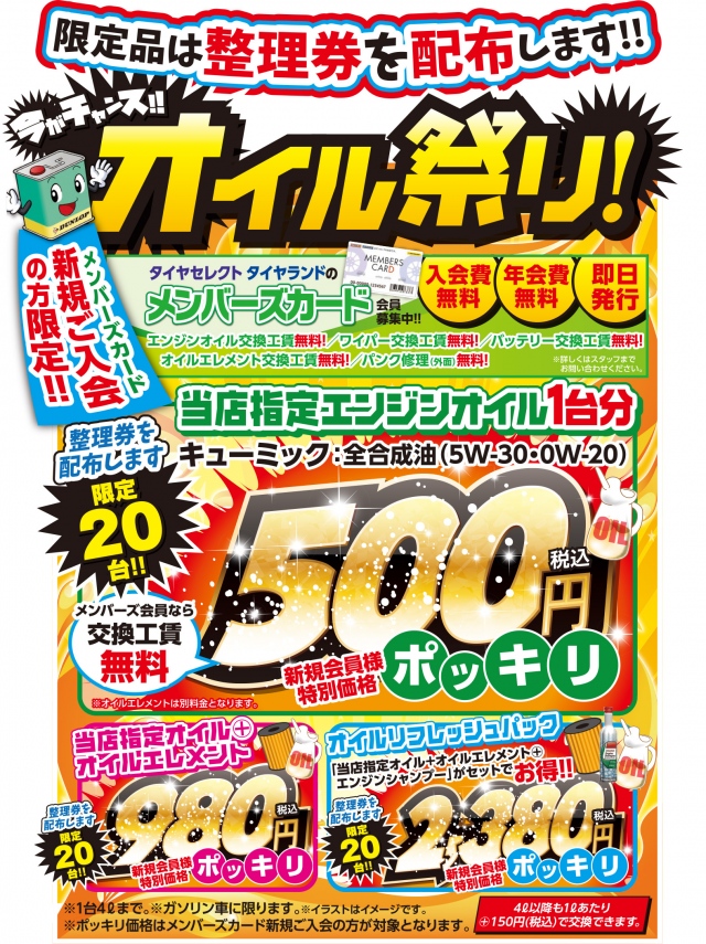 ・新規でタイヤセレクトメンバーズカードにご入会の方。