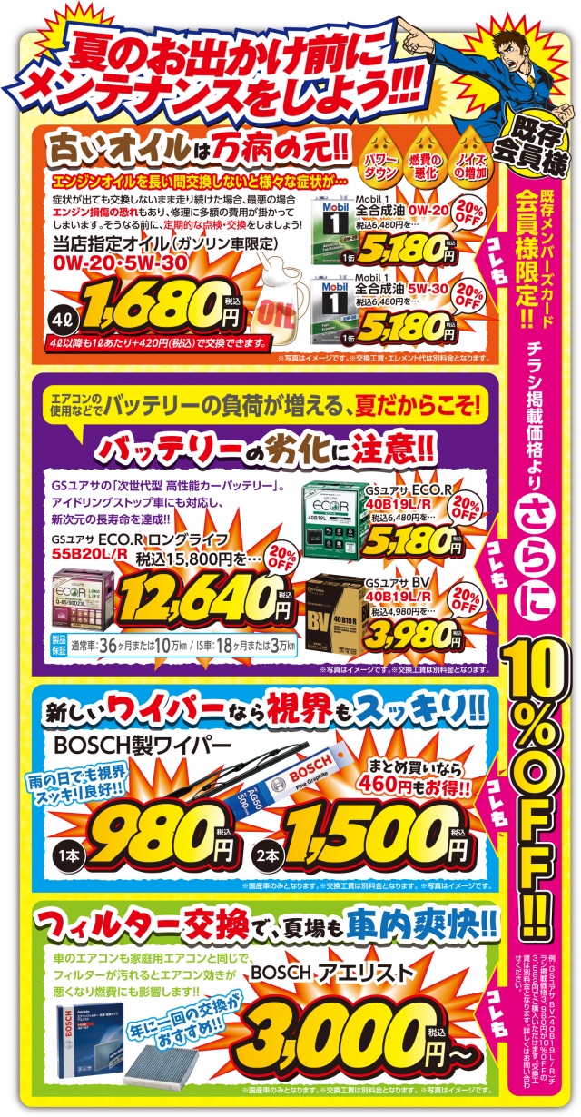 今回の夏の全力セ~ルは『愛車のメンテナンス。』に力入ってます。