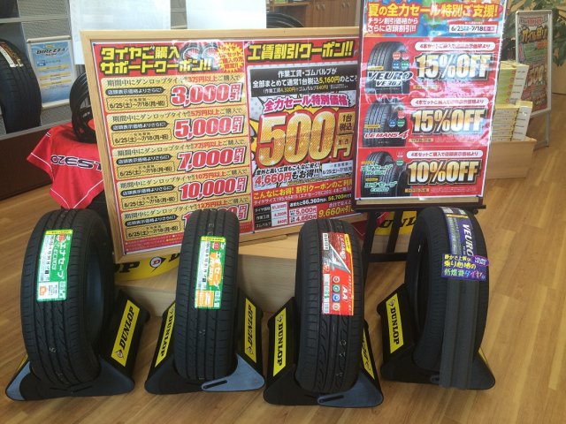 只今、タイヤセレクト柏店では『夏の全力セール!』真っ只中です。