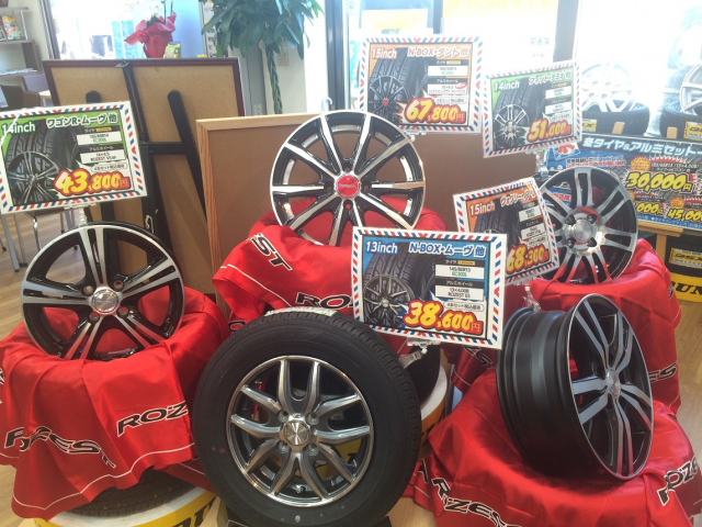 他にも、タイヤ交換と一緒にアルミホイールはいかがでしょう?あえて季節ハズレのスタッドレスはいかがでしょう?どちらも安くなってます。