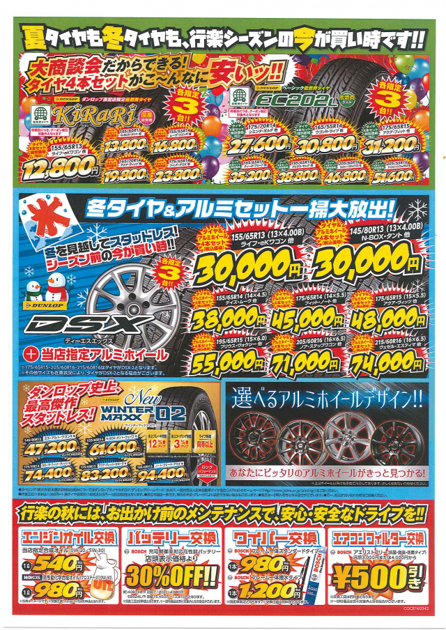 今回もお買得タイヤ(夏と冬)数量限定で仕入れました。