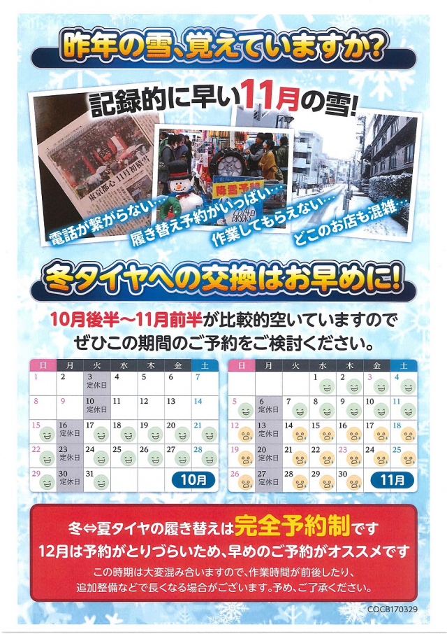 タイヤショップはこれからの時期が1年の中で一番忙しくなります。