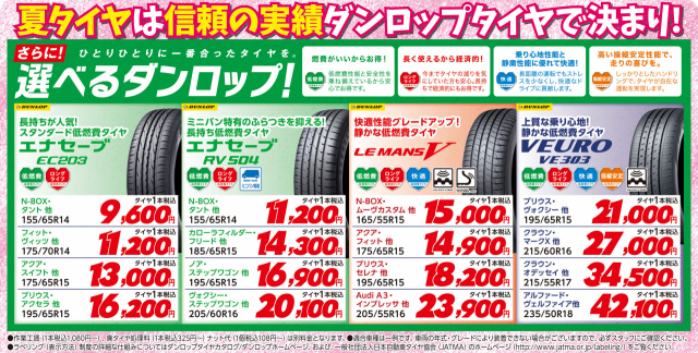 夏タイヤは、選べるダンロップ!信頼と実績!